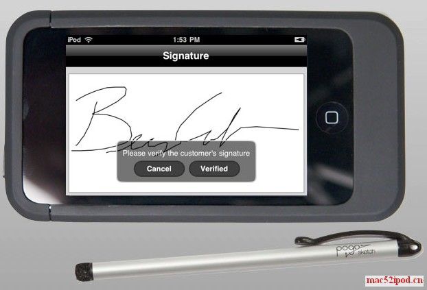 苹果EasyPay touch的顾客签字界面……触摸屏的优势体现出来了