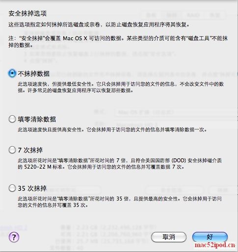 Mac技巧之苹果电脑 Mac OS X系统下彻底删除硬盘分区或移动硬盘、U盘上的文件数据,恢复软件也无法复原的方法