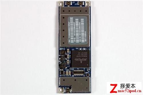 无线网络模块,包括Broadcom 802.11 n芯片BCM4321KFBG,背面还有一颗芯片标号为BCM94321COEX2。另有两颗芯片在金属屏蔽罩下。