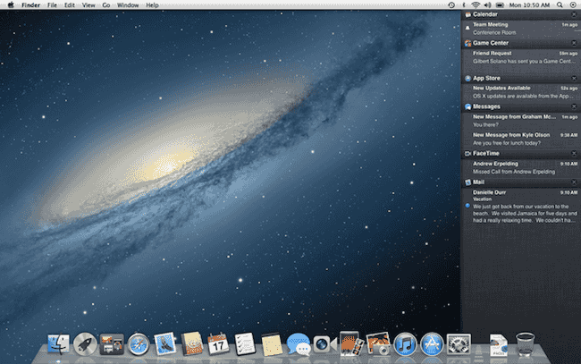 Mac OS X 系统一直缺少一个原生的通知应用,以前我们用第三方的 Growl,后来 Growl 新版开始收费时我就说过,苹果肯定会把通知中心这么重要的东西做成系统原生的。这不,来了。看起来和 iPad 上的通知系统差不多。新邮件、日历事项到期、好友请求、浏览器下载完成等等,都能随时随地看到并一键进入。
