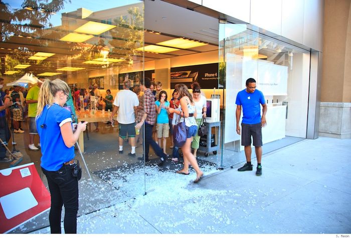 达拉斯苹果Apple Store的 iPhone 4体验区被抢劫后的照片